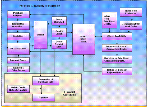 This module deals with the inventory of all construction materials, consumables equipments & asset items at different project sites of the company along with their purchase and supplier details. The Store issues items/equipment to various users and details are recorded. Once the stock reaches below the reorder level, it generates a requisition for purchase. This also maintains records of purchases, stock, and supplier list, item/equipment/material master tables.